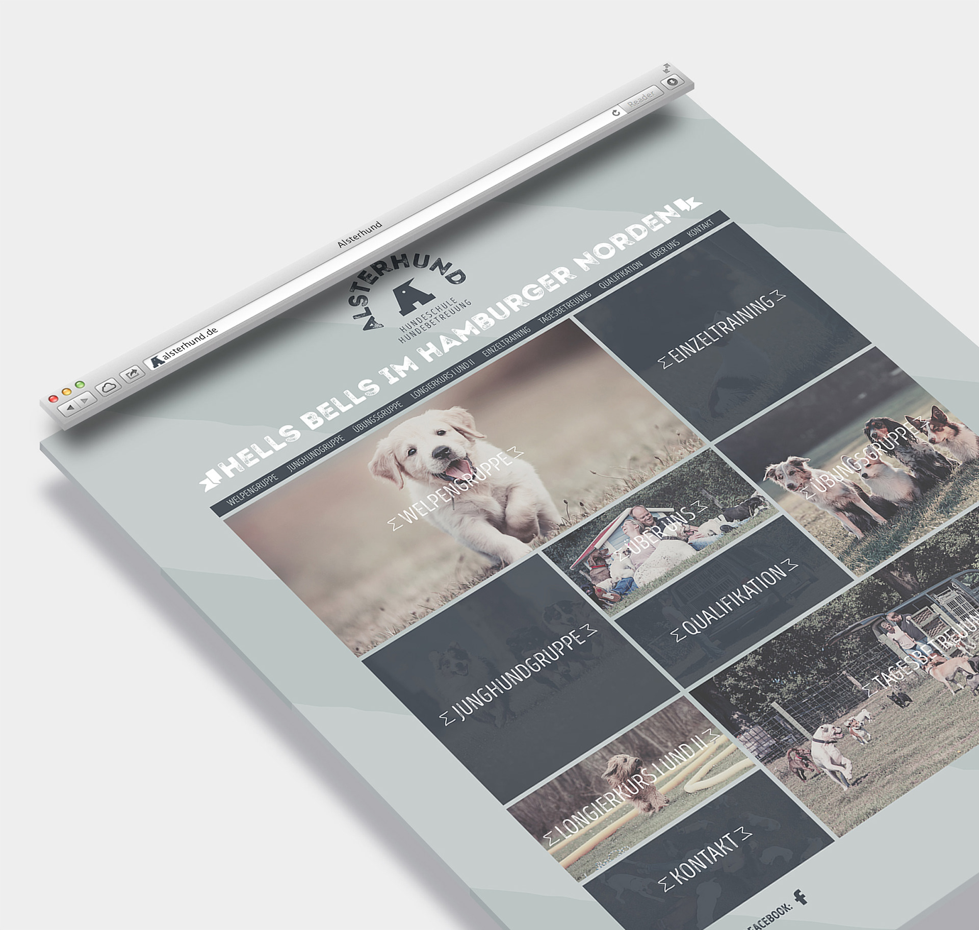 Hells Bells im Hamburger Norden. Alsterhund arbeiten seit vielen Jahren erfolgreich mit Hunden und ihren Menschen. Mit Herz und Hand. Neben dem Branding und der Geschäftsausstattung entwickelten wir die Webseite und ein Booklet für die Kundenakquise.