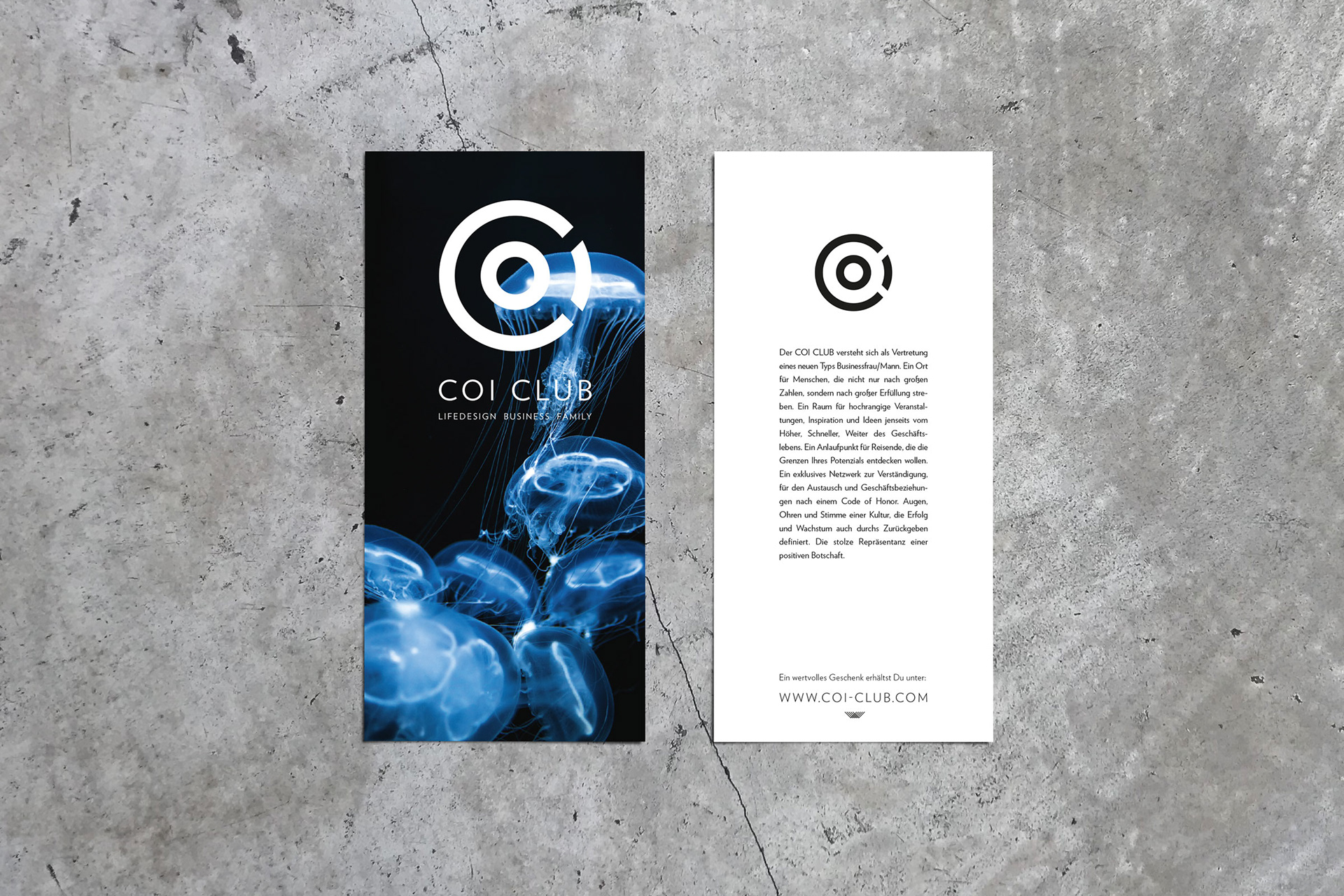 Club of Inspiration. Ein Ort für Menschen, die nicht nur nach großen Zahlen, sondern nach Erfüllung streben. Ein Raum für hochrangige Veranstaltungen, Inspiration und Ideen jenseits vom Höher, Schneller, Weiter des Geschäftslebens. Augen, Ohren und Stimme einer Kultur, die Erfolg und Wachstum auch durchs Zurückgeben definiert. Das Branding: modern und edel. Aber auch nahbar und inspirativ.